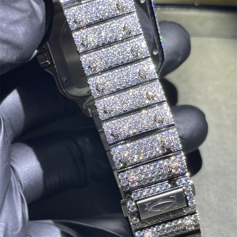 DEF VVS Moissanite Studded Watch | Santos Iced Out Moissanite Watch | Full Bussdown Watch